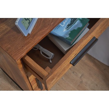 Wyposażony w szufladę oraz schowek z drzwiczkami