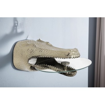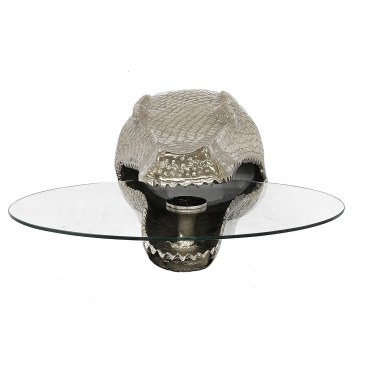 Stolik WILDLIFE KROKODIL to prawdziwa perełka dla miłośników odważnych, designerskich mebli. Jego unikatowa forma przyciąga wzrok – szklany, okrągły blat "zawieszony" jest na realistycznie odwzorowanej figurze krokodyla wykonanej z aluminium w eleganckim, srebrnym wykończeniu.