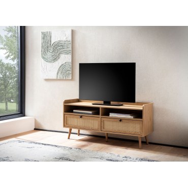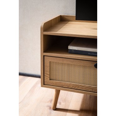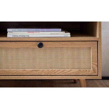 Opis produktu: Lowboard WOHNLING 120x56x39 cm – dąb z rattanowym frontem