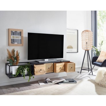 Ten wyjątkowy mebel zachwyca nie tylko funkcjonalnością, ale także indywidualnym charakterem. Fronty szuflad wykonane z litego drewna mango oraz rattanu nadają mu naturalny i stylowy wygląd, a dzięki ręcznemu wykonaniu każda sztuka jest niepowtarzalna. Szafka została zaprojektowana do montażu na ścianie, co zapewnia lekkość formy i ułatwia utrzymanie porządku.