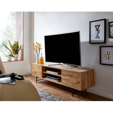 Ta elegancka szafka RTV wyróżnia się nowoczesnym designem i przyciągającym wzrok liniowym wzorem na frontach drzwiczek. Praktyczna i przestronna, oferuje idealne miejsce na Twój telewizor oraz wszystkie niezbędne akcesoria multimedialne.