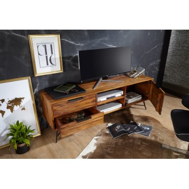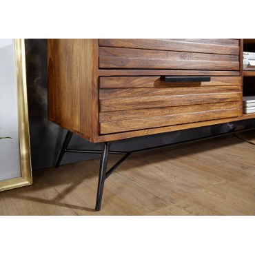 Szafka RTV FLUID 160 cm – Drewno Akacjowe / Czarny Metal