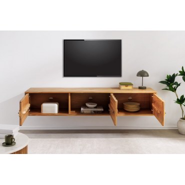 Elegancka wisząca szafka RTV MYSTIC LIVING to połączenie naturalnego drewna i nowoczesnej formy. Minimalistyczny design sprawia, że mebel doskonale odnajdzie się zarówno w nowoczesnych, jak i bardziej klasycznych wnętrzach.