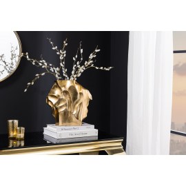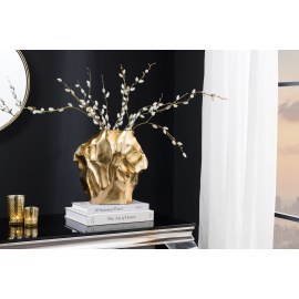 Wazon LIQUID to elegancki dodatek dekoracyjny, który łączy luksusowy wygląd z unikalnym rzemiosłem. Złote wykończenie z efektem młotkowania nadaje mu wyrazisty charakter, idealnie komponując się z wnętrzami w stylu glamour, nowoczesnym lub art déco.