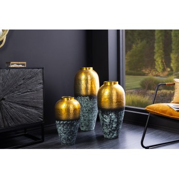 Wazon ORIENT to wyjątkowy element dekoracyjny, który przyciąga wzrok dzięki swojej złotej powierzchni z subtelną patyną. Jego duży rozmiar (65 cm) sprawia, że stanie się centralnym punktem w każdym pomieszczeniu. Wykonany z metalu, wazon charakteryzuje się subtelnym, klasycznym designem, który doskonale komponuje się z nowoczesnymi oraz tradycyjnymi wnętrzami. Złota patyna dodaje mu charakteru i sprawia, że jest to prawdziwa ozdoba w każdym salonie, jadalni czy holu.
